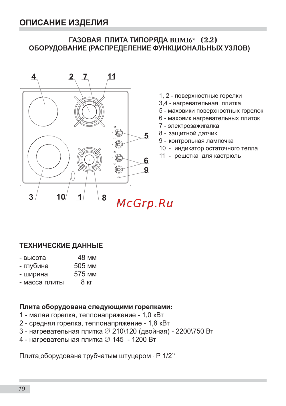ГАЗОВАЯ ПЛИТА ТИПОРЯДА BHMI6*