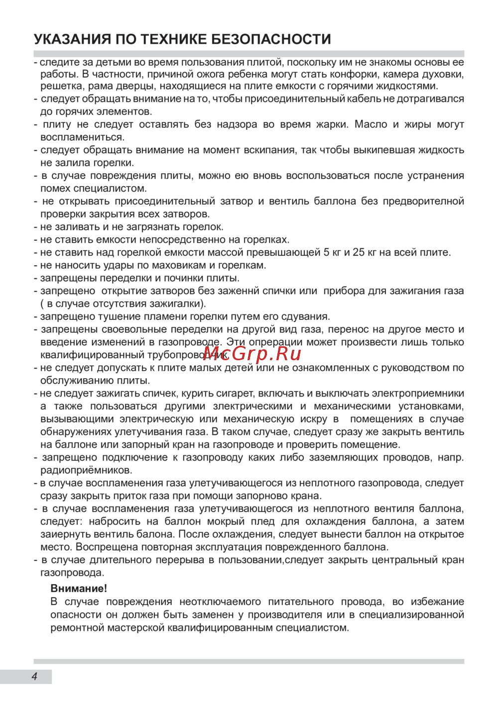 - не следует допускать к плите малых детей или не ознакомленных с руководством по