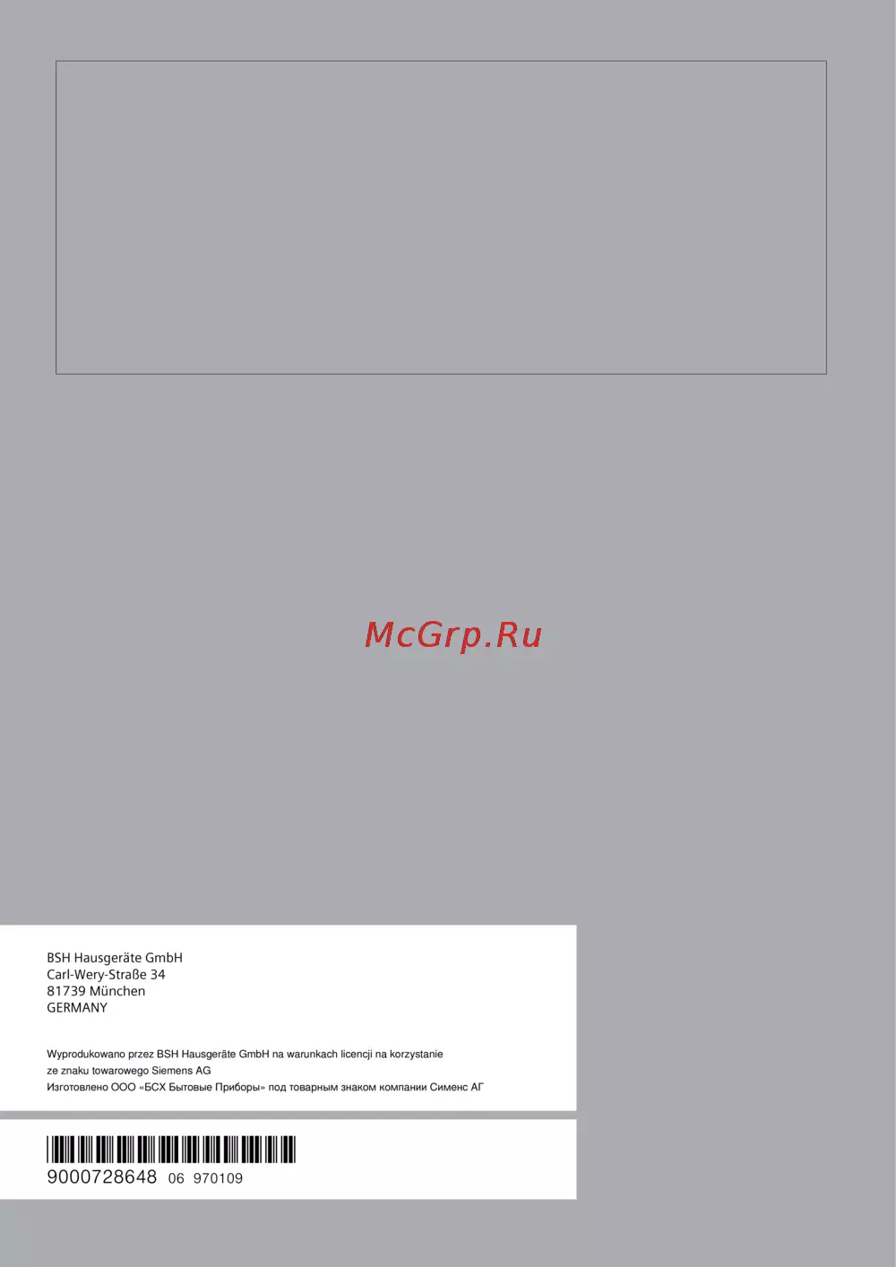 Изготовлено ООО «БСХ Бытовые Приборы» под товарным знаком компании Сименс АГ