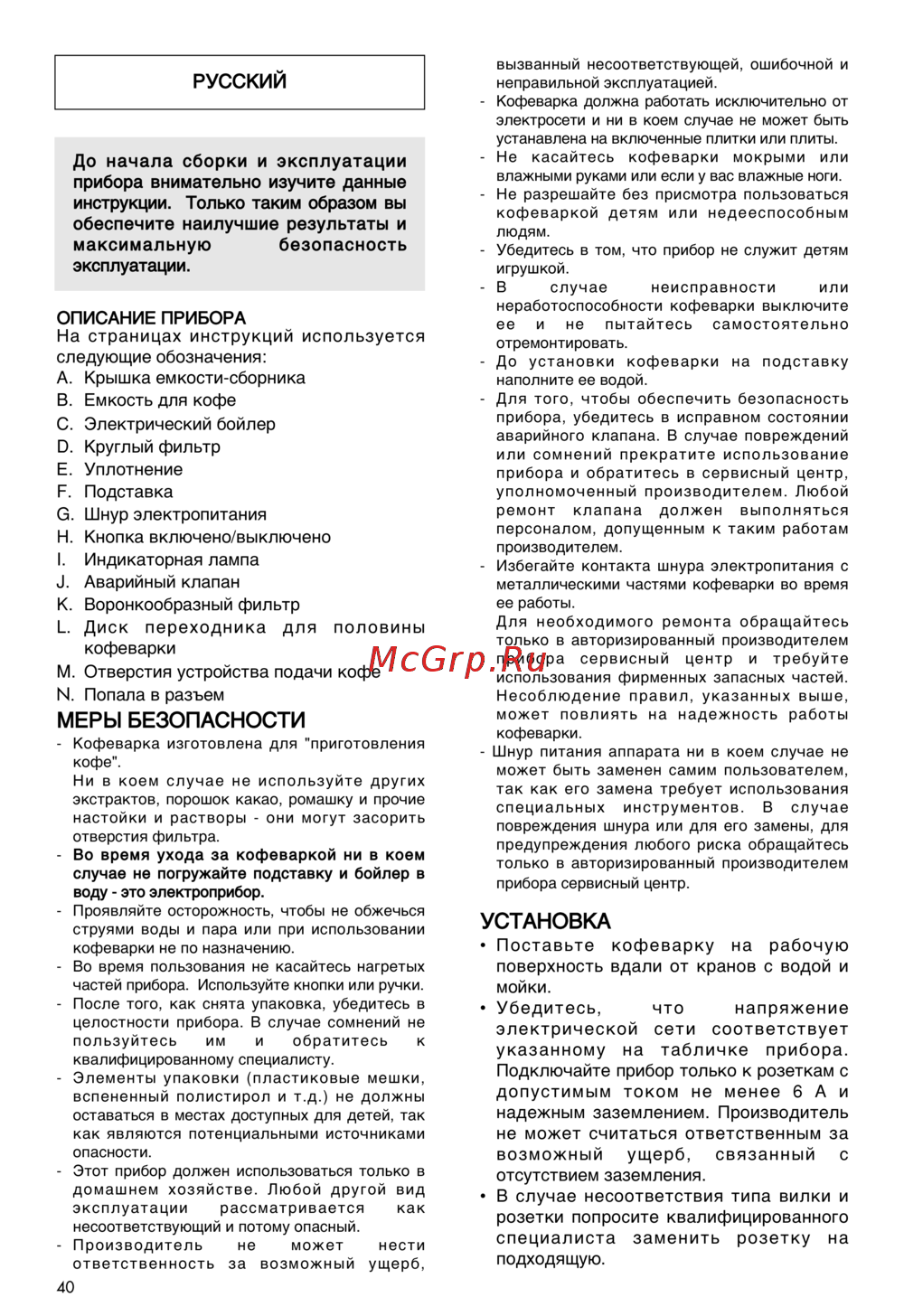 Delonghi EMK 21 [4/6] Éèàëäçàö èêàåéêä ç òú ìëˆ ı ëìòú ûíˆëè ëòôóî áûâúòfl òîâ û ëâ ó óáì âìëfl ä ä í âïíóòúë ò ó ìëí ç емкость для кофе ë ùîâíú ë âòíëè óèîâ d ä û î è ùëî ú ö ìôîóúìâìëâ f èó òú í g òìû îâíú óôëú ìëfl h äìóôí íî âìó íî âìó i àì ëí úó ì fl î ïô j ä ëèì è íî ô ì k çó óìíóó áì è ùëî ú l ñëòí ôâ âıó ìëí îfl ôóîó ëì íóùâ íë m отверстия устройства подачи кофе n попала в разъем