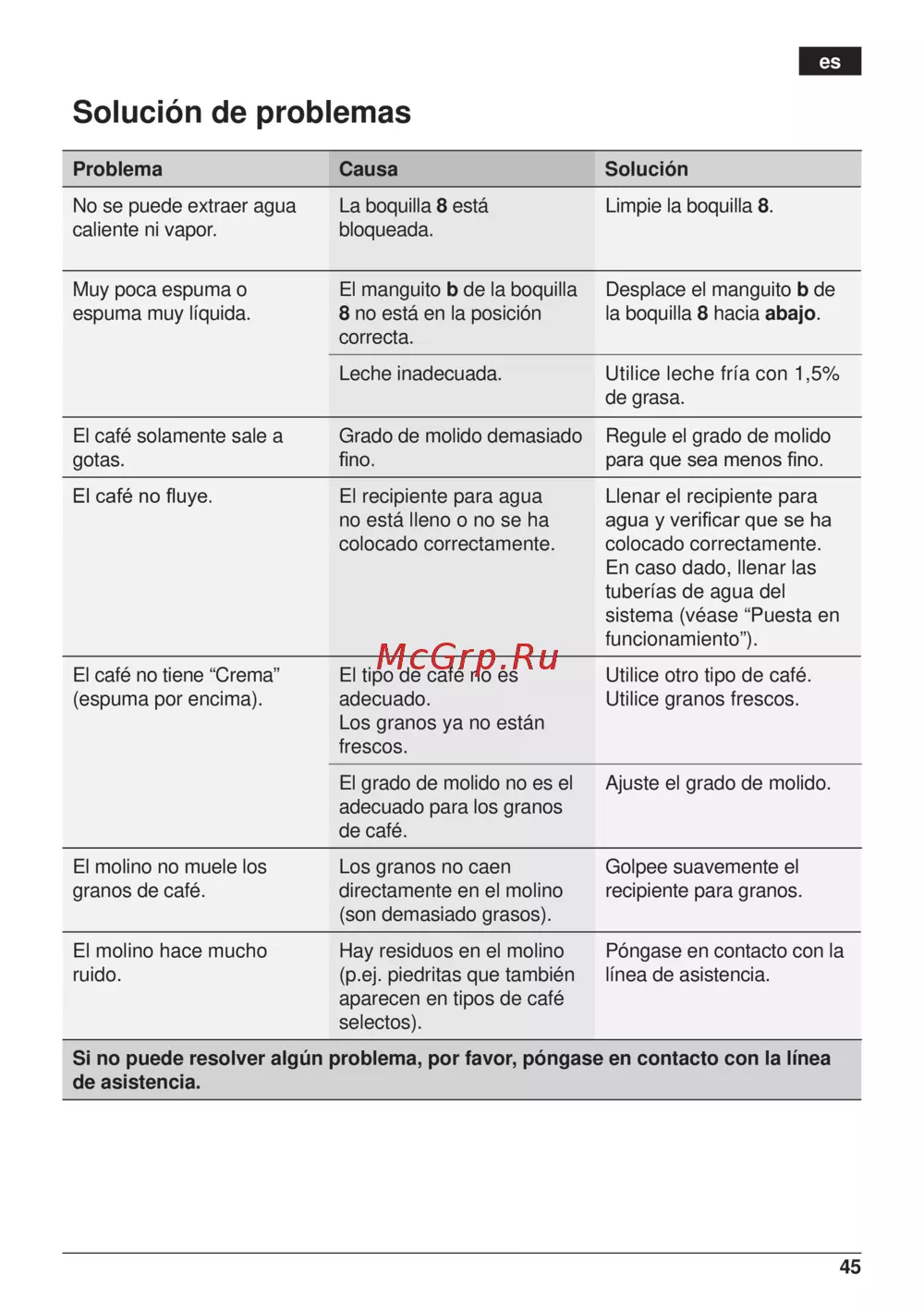 Si no puede resolver algún problema, por favor, póngase en contacto con la línea