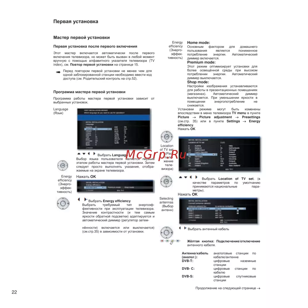 - Использование пульта ду для управления телевизором в режиме радио p.94