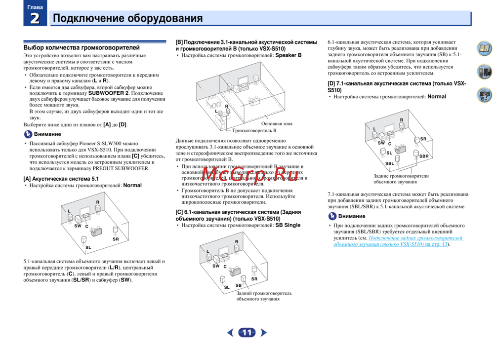 Pioneer VSX-S310-K — подключение акустических систем: выбор громкоговорителей и настройки [11/68]