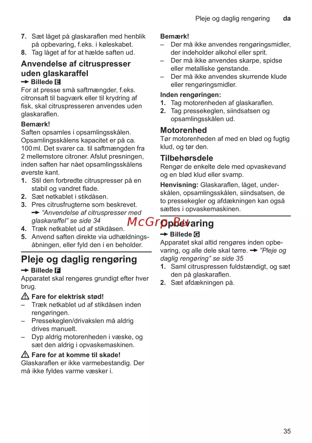 Bosch MCP 72GMB — guide til brug og rengøring af citruspresser [35/114]