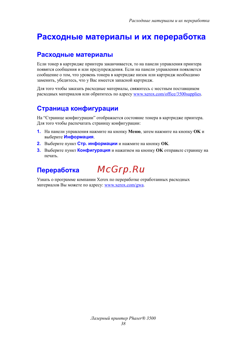 расходных материалов или обратитесь по адресу www.xerox.com/office/3500supplies