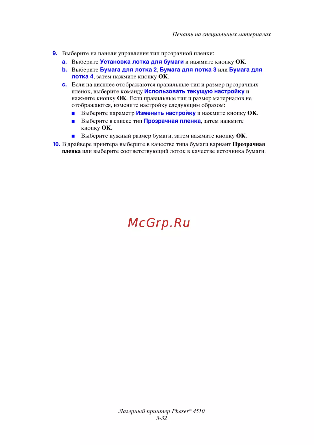 Xerox Phaser 4510N — настройка печати на прозрачных пленках для принтеров [63/144]