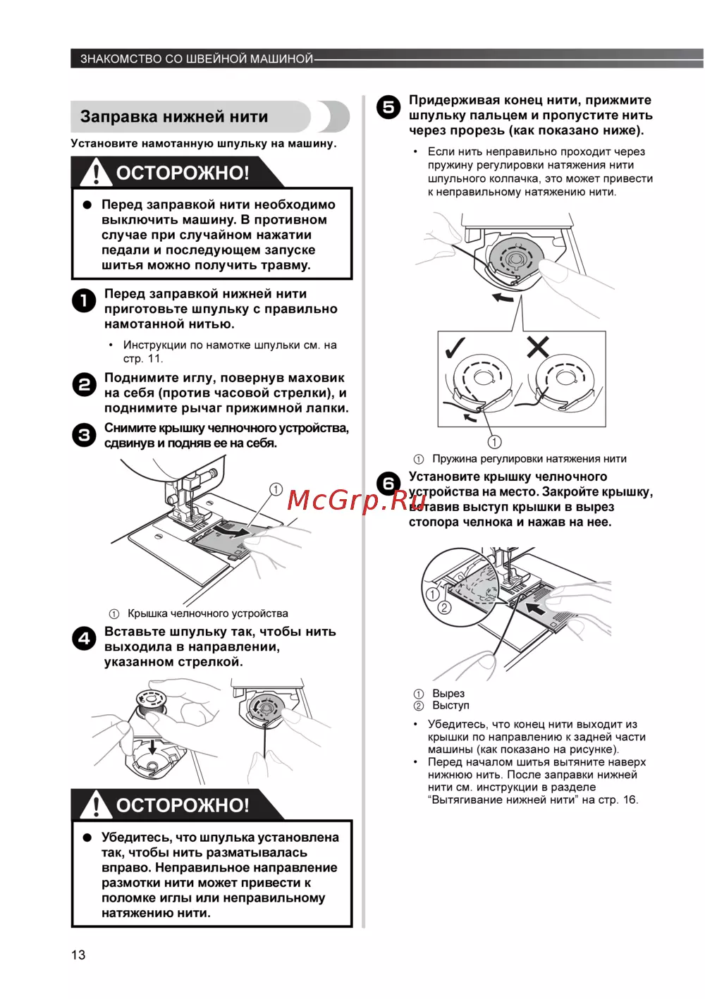 - Материал во время шитья и строго соблюдайте инструкции при шитье со свободной подачей материала чтобы не погнуть и не сломать иглу p.3