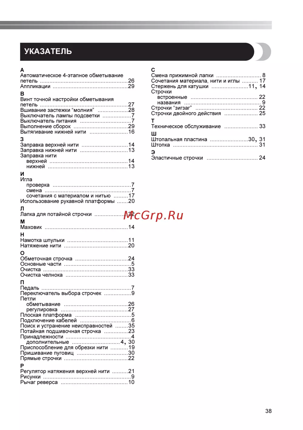 Изучите полный указатель функций швейного оборудования, включая обметывание петель, заправку нити и устранение неисправностей. Полезные советы и инструкции.