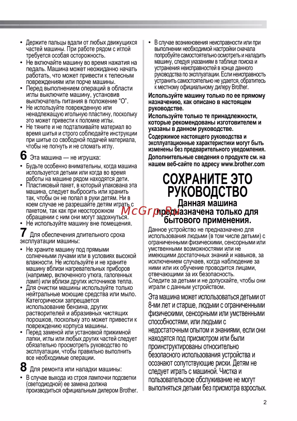 ![Brother ArtCity 200 [3/48] Эта машина может использоваться детьми от 8 ми лет и старше людьми с ограниченными физическими сенсорными или умственными способностями или людьми с недостаточным опытом и знаниями если они находятся под присмотром или были проинструктированы относительно безопасного использования устройства и осознают сопутствующие риски детям не следует играть с машиной чистка и пользовательское обслуживание не могут выполняться детьми без присмотра взрослы](/views2/1964176/page3/bg3.png)