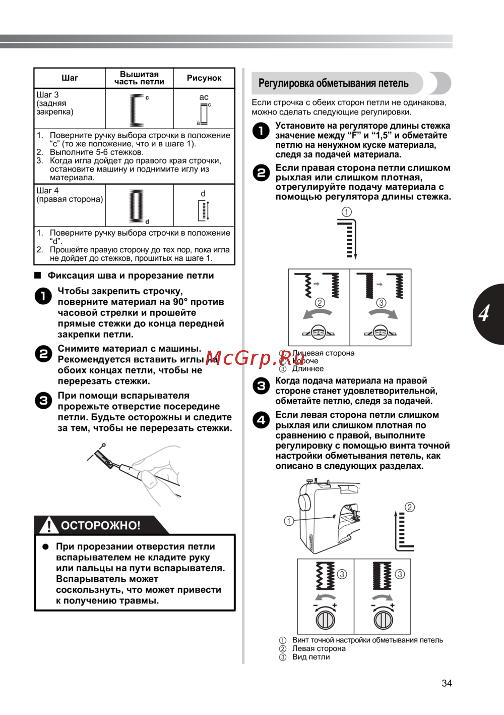 - Убедитесь что шпульный колпачок вставлен правильно так как в противном случае игла может сломаться p.42