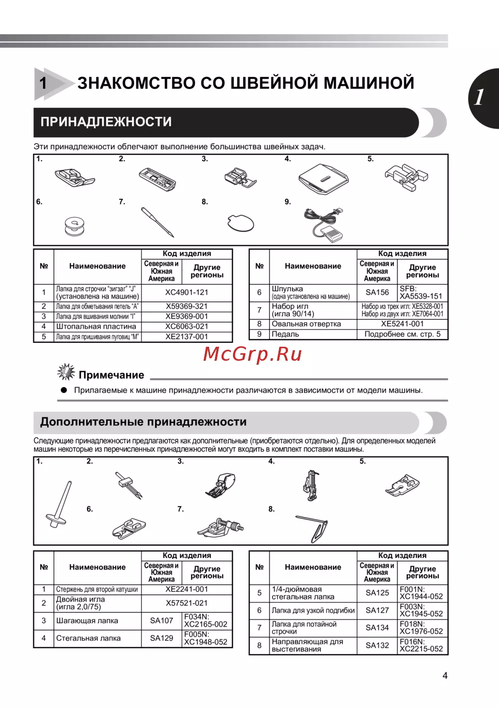 машин некоторые из перечисленных принадлежностей могут входить в комплект поставки машины.