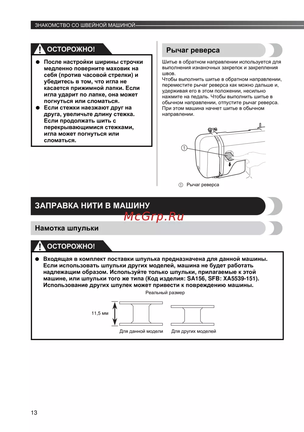 машине, или шпульки того же типа (Код изделия: SA156, SFB: XA5539-151).