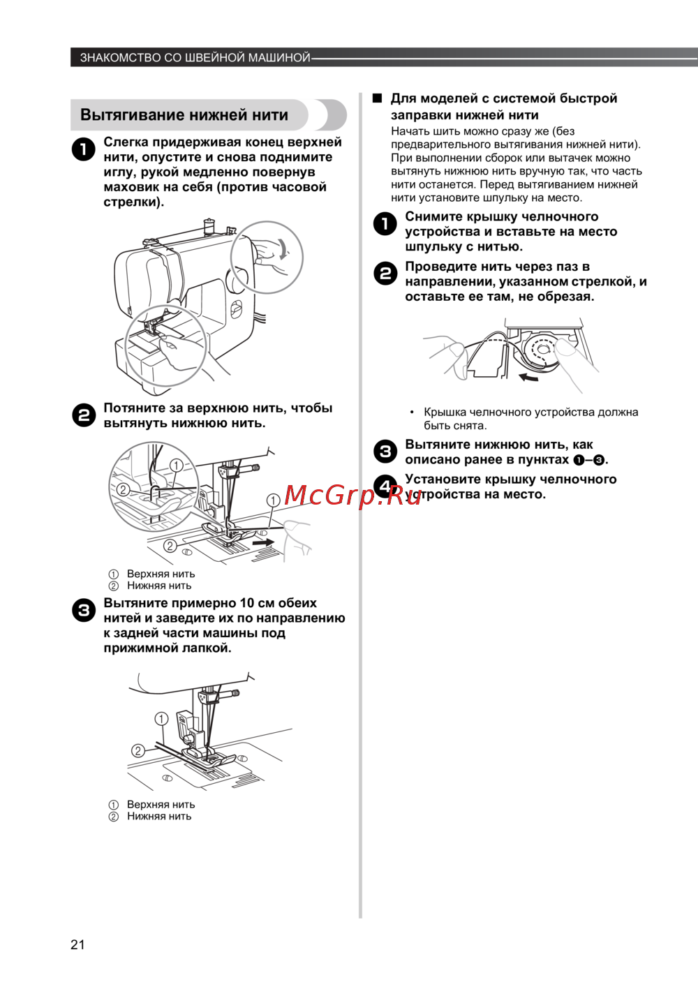 - С система быстрой заправки нижней нит p.46