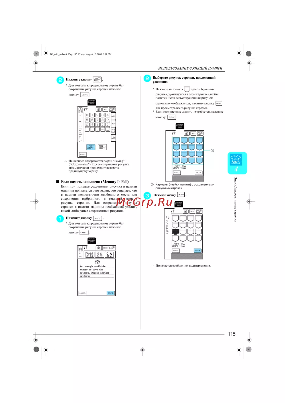 - Использование функций памяти 114 p.5