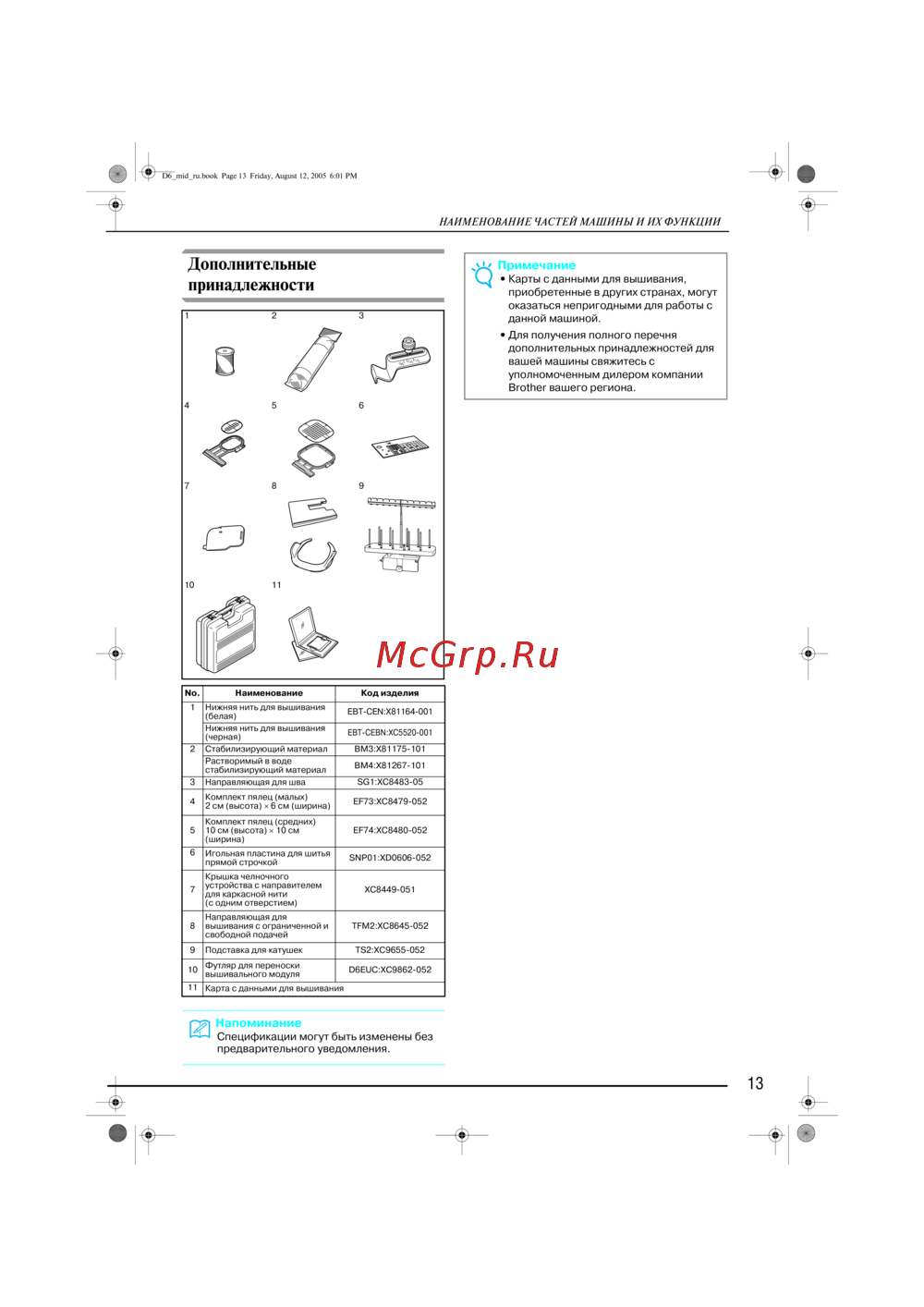 Brother Innov-is 1500 (D) [14/217] Дополнительные принадлежности