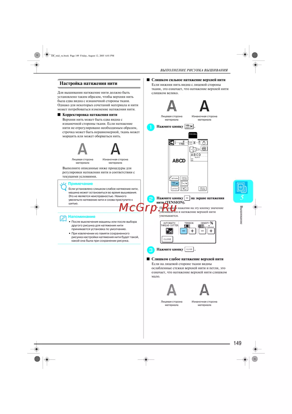 - Просмотр экрана шитья 131 подготовка материала 132 p.6