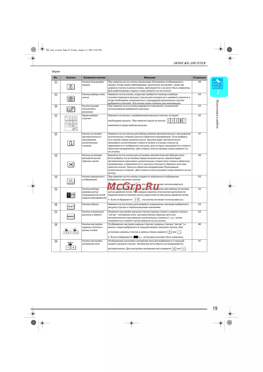 - Функции кнопок p.181