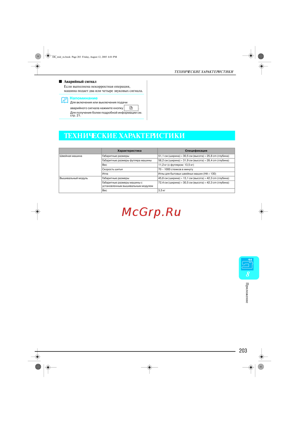 ![Brother Innov-is 1500 (D) [204/217] Технические характеристики](/views2/1964184/page204/bgcc.png)