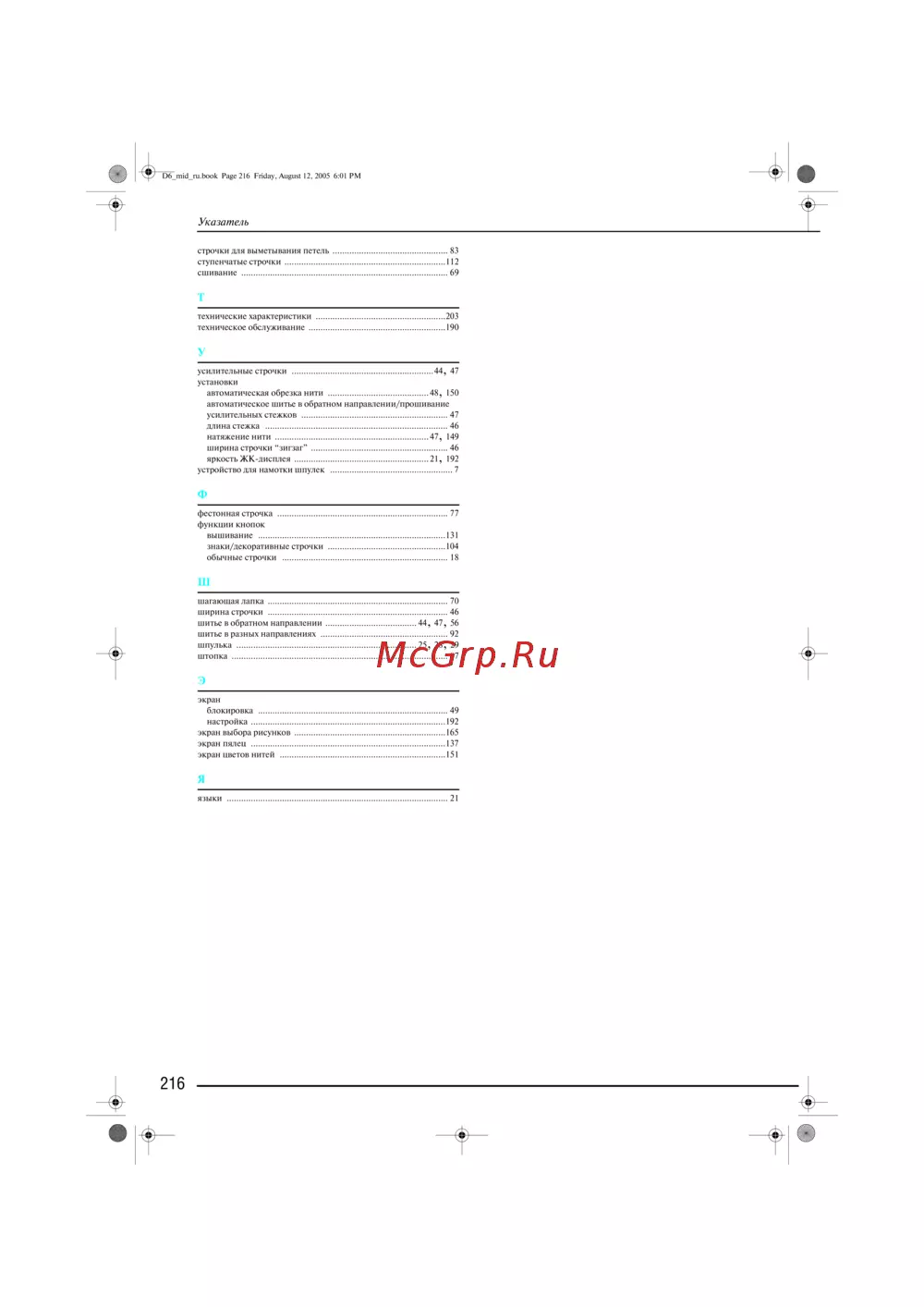 Brother Innov-is 1500 (D) [217/217] Указатель