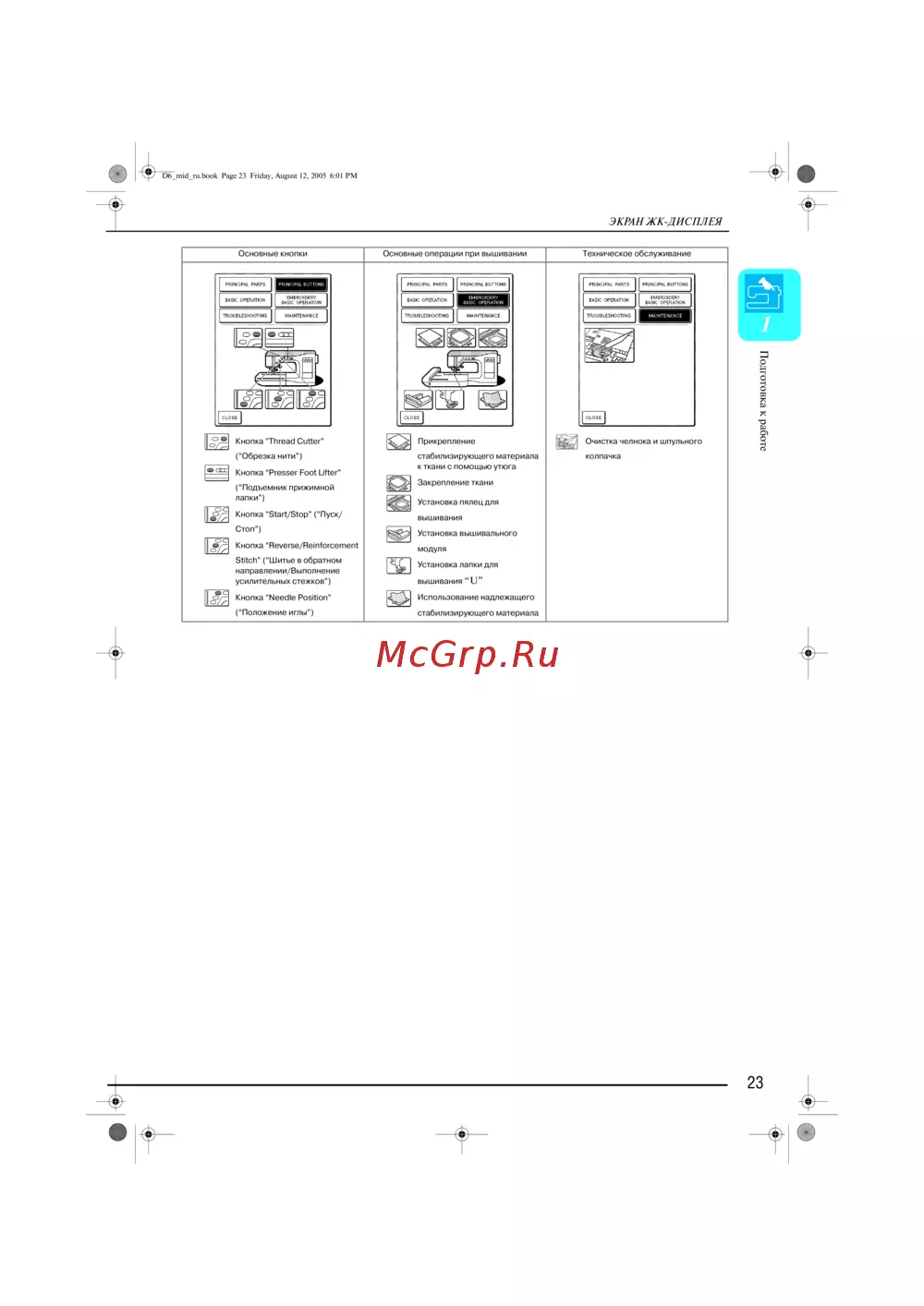 Основные кнопки Основные операции при вышивании Техническое обслуживание