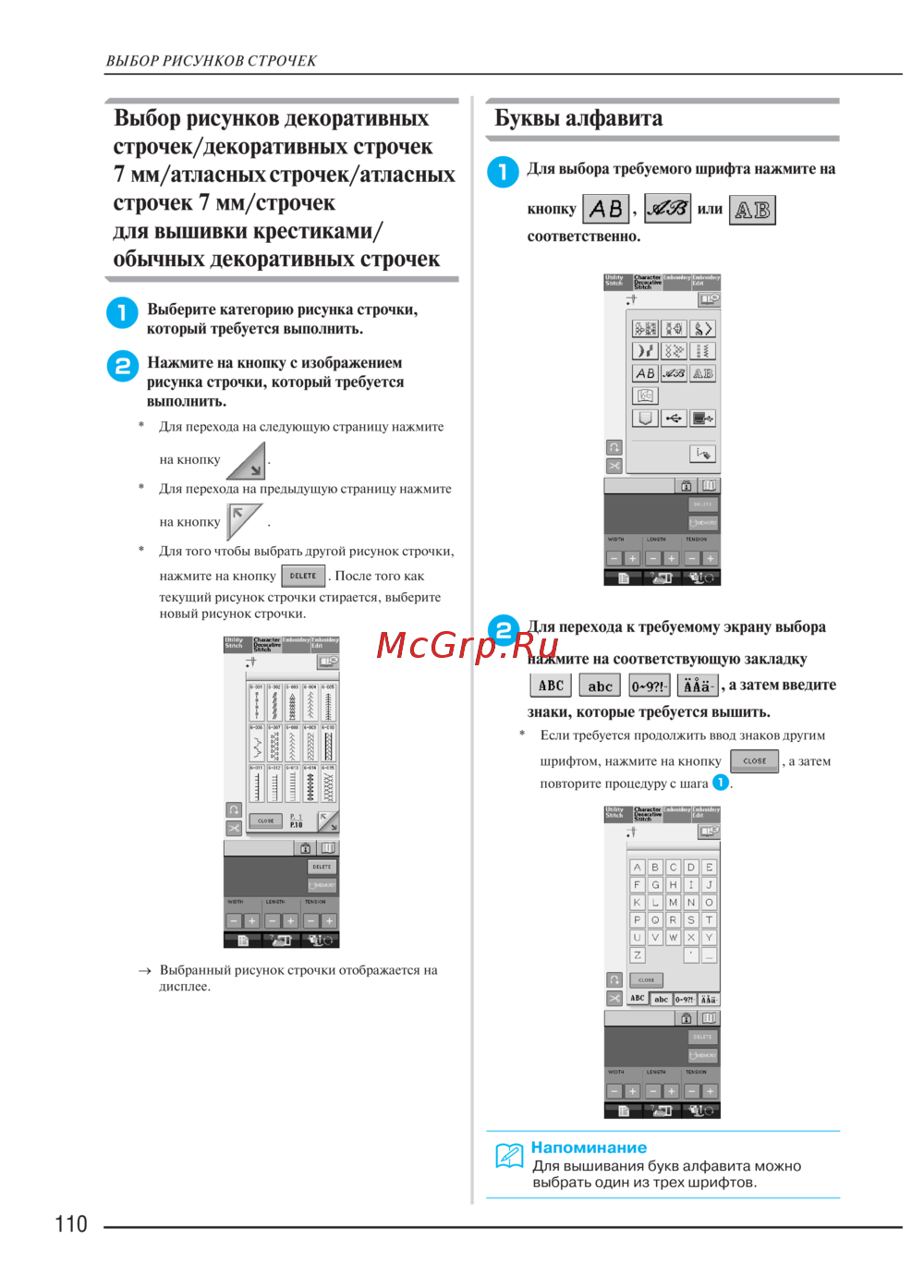 - А затем на кнопку можно во время шитья получить рекомендации по решению незначительных проблем для возврата к первоначальному экрану в любой момент нажмите на p.245
