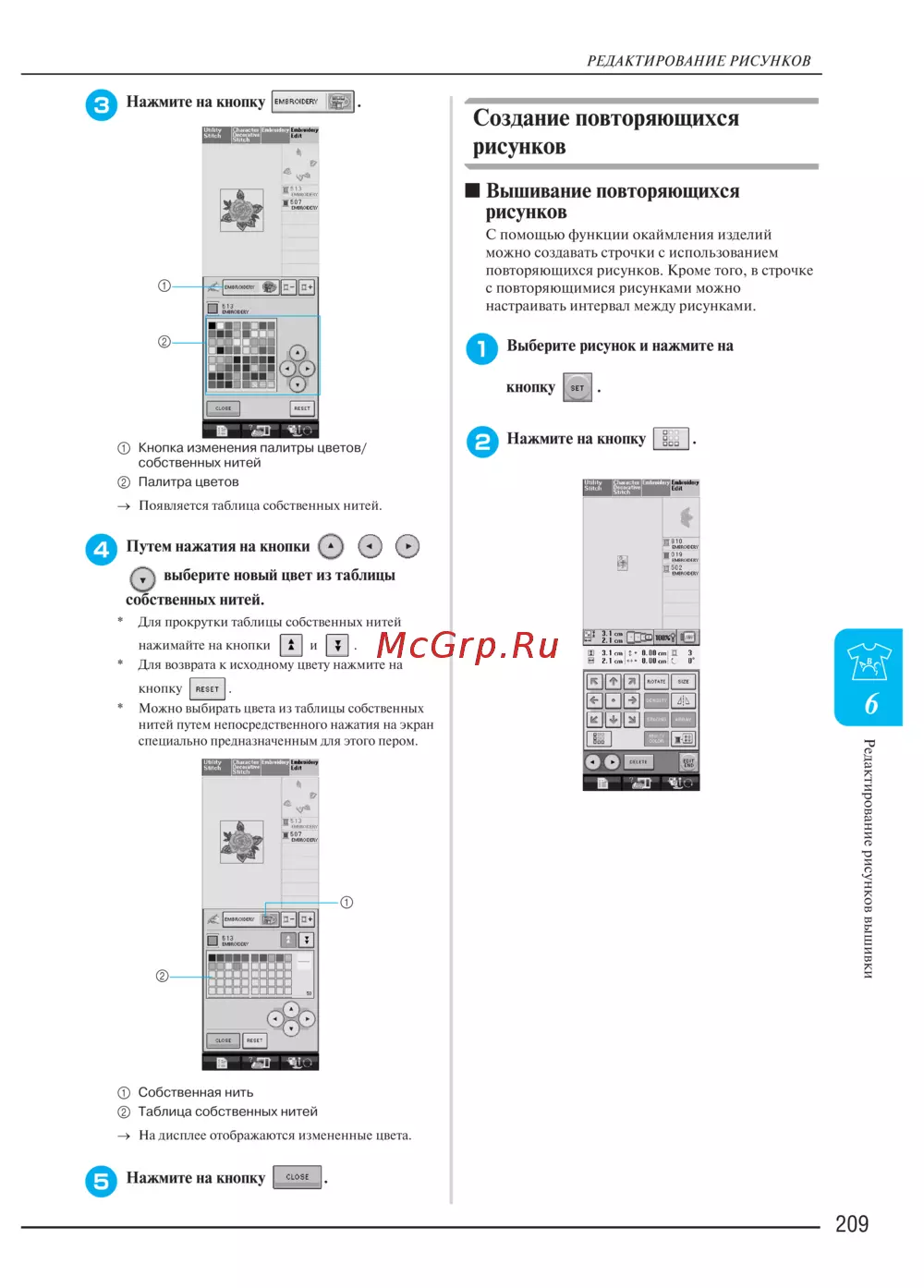 - А затем на кнопку можно во время шитья получить рекомендации по решению незначительных проблем для возврата к первоначальному экрану в любой момент нажмите на p.245