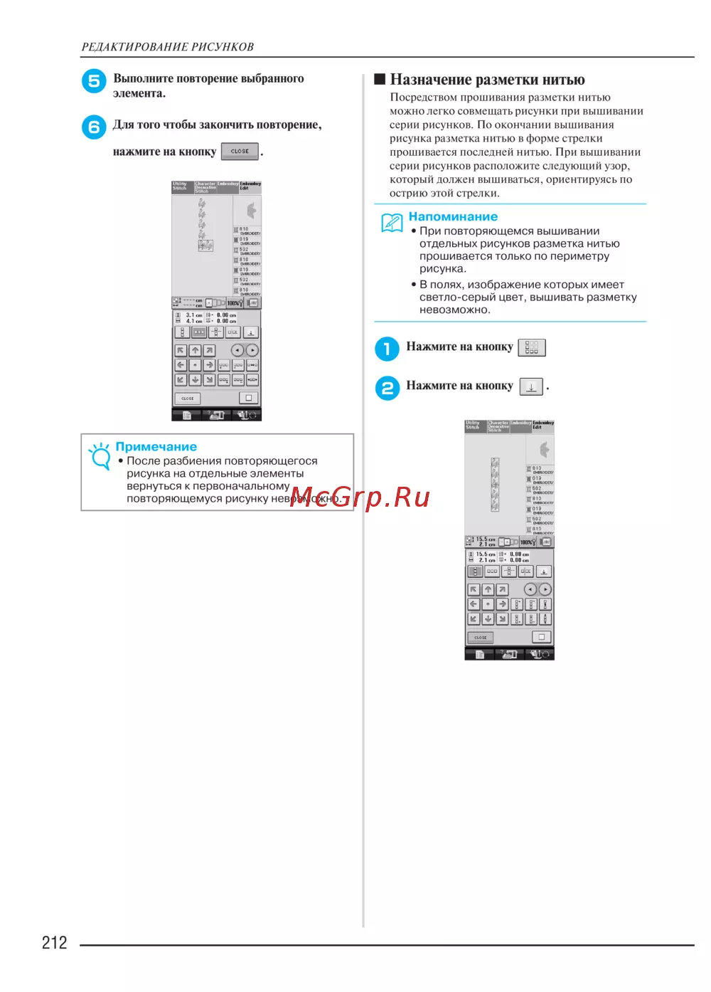- А затем на кнопку можно во время шитья получить рекомендации по решению незначительных проблем для возврата к первоначальному экрану в любой момент нажмите на p.245