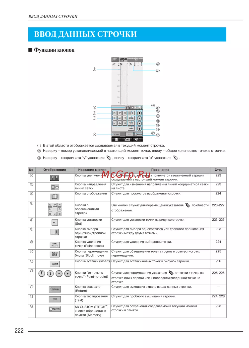 - А затем на кнопку можно во время шитья получить рекомендации по решению незначительных проблем для возврата к первоначальному экрану в любой момент нажмите на p.245