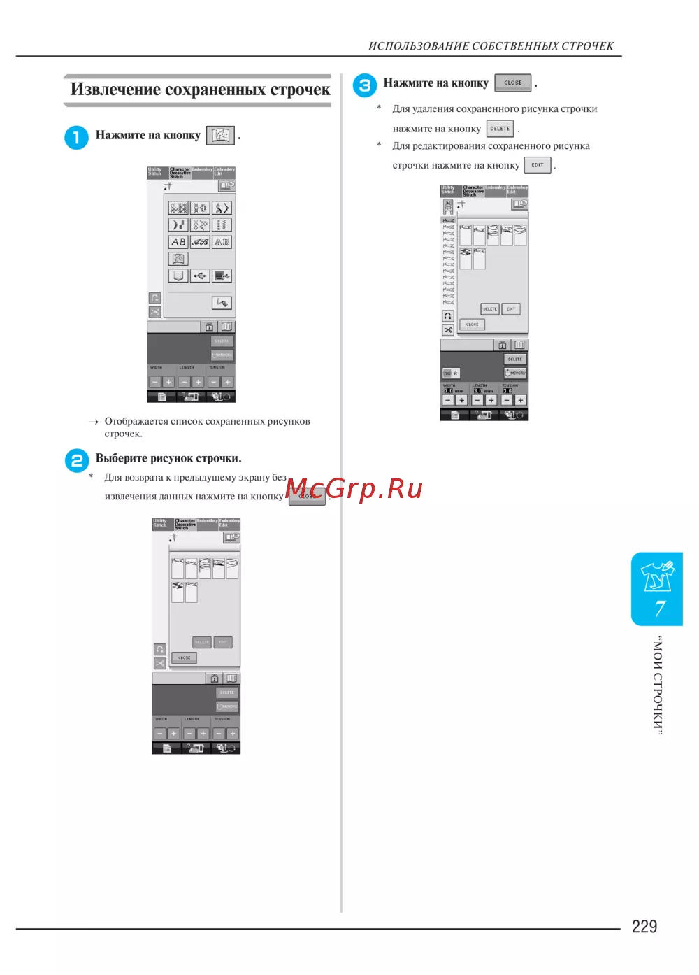 - А затем на кнопку можно во время шитья получить рекомендации по решению незначительных проблем для возврата к первоначальному экрану в любой момент нажмите на p.245