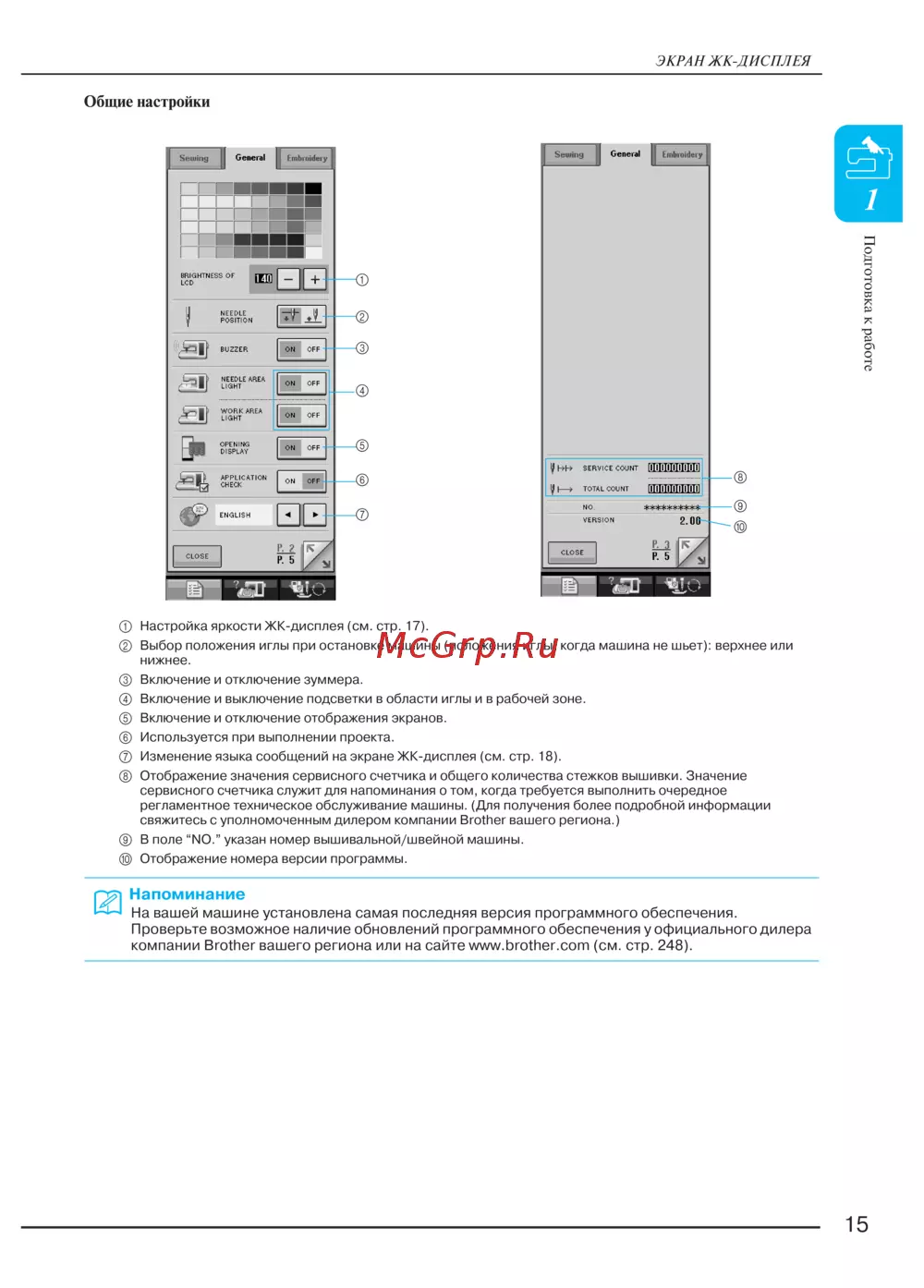 - А затем на кнопку можно во время шитья получить рекомендации по решению незначительных проблем для возврата к первоначальному экрану в любой момент нажмите на p.245