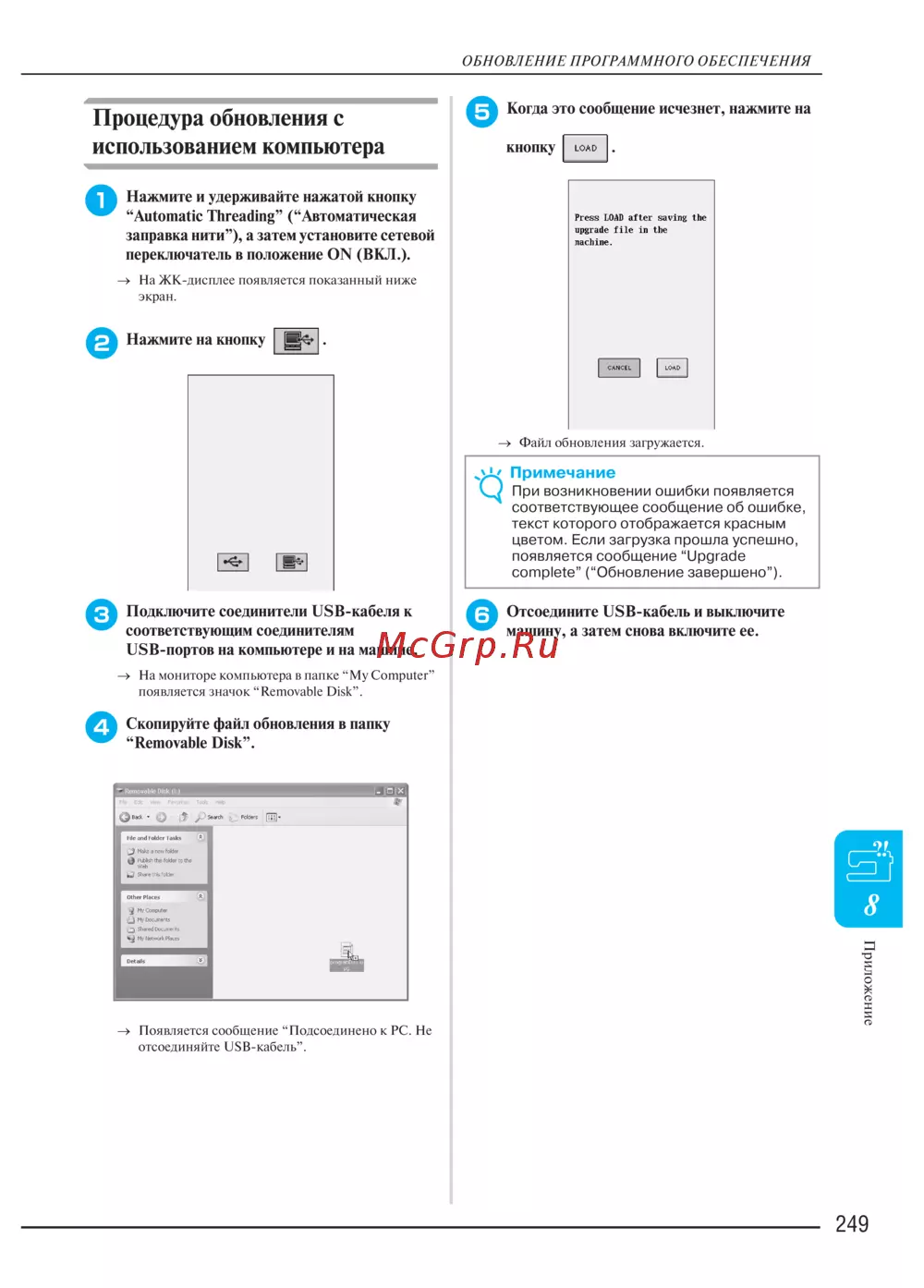- Процедура обновления с использованием компьютера p.258