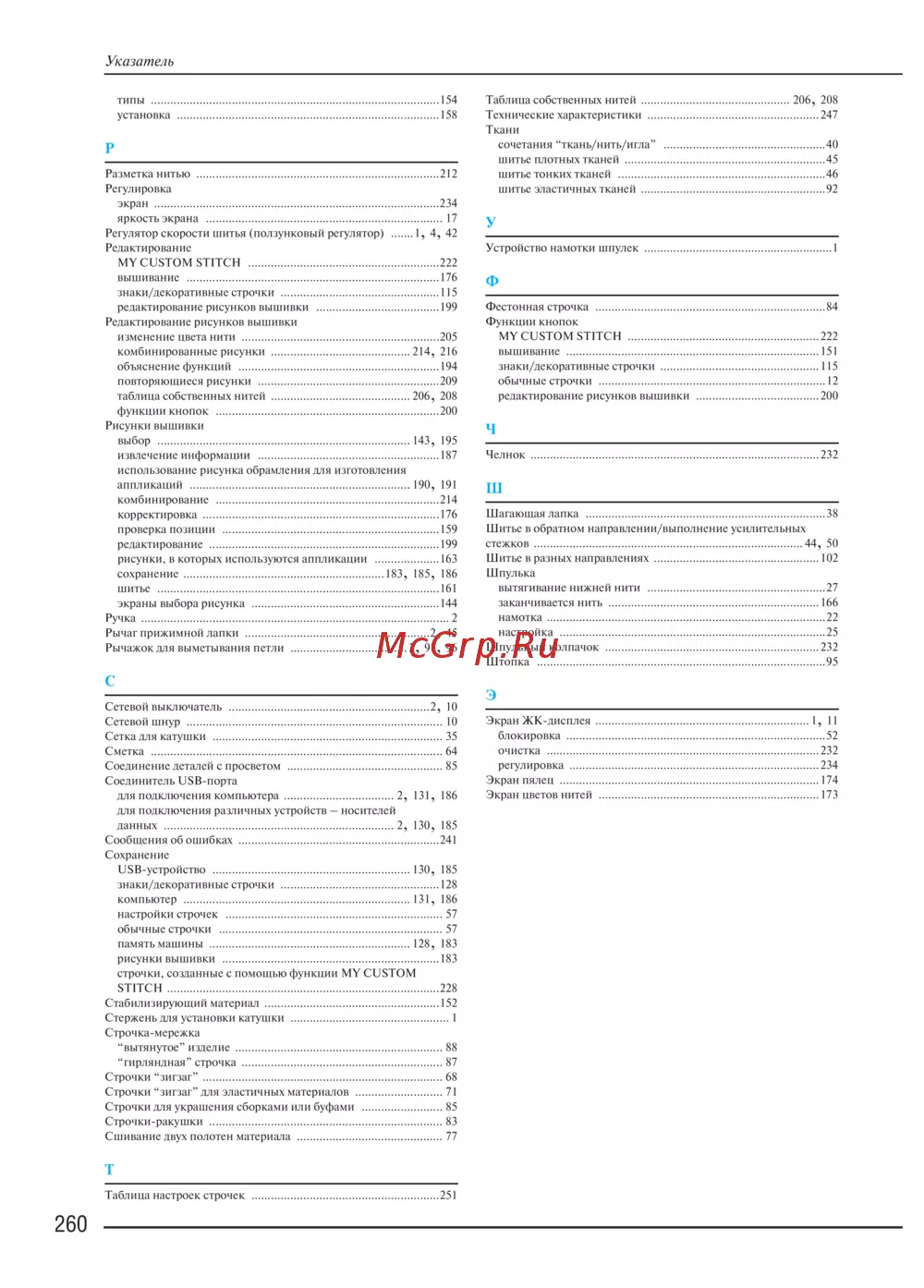 - А затем на кнопку можно во время шитья получить рекомендации по решению незначительных проблем для возврата к первоначальному экрану в любой момент нажмите на p.245
