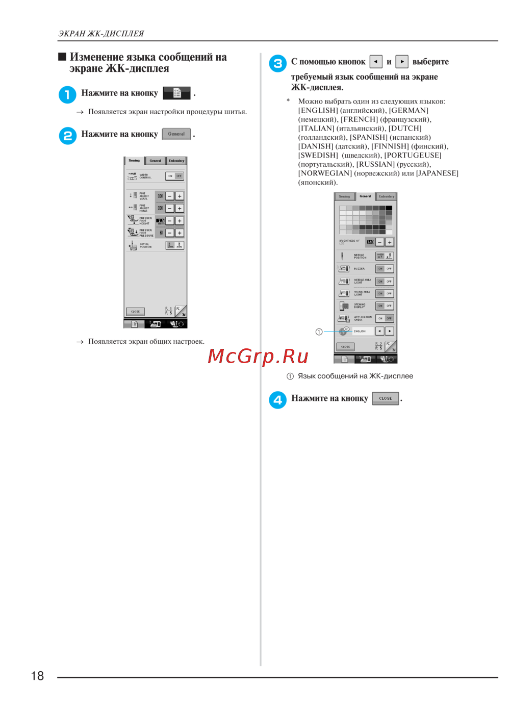- А затем на кнопку можно во время шитья получить рекомендации по решению незначительных проблем для возврата к первоначальному экрану в любой момент нажмите на p.245