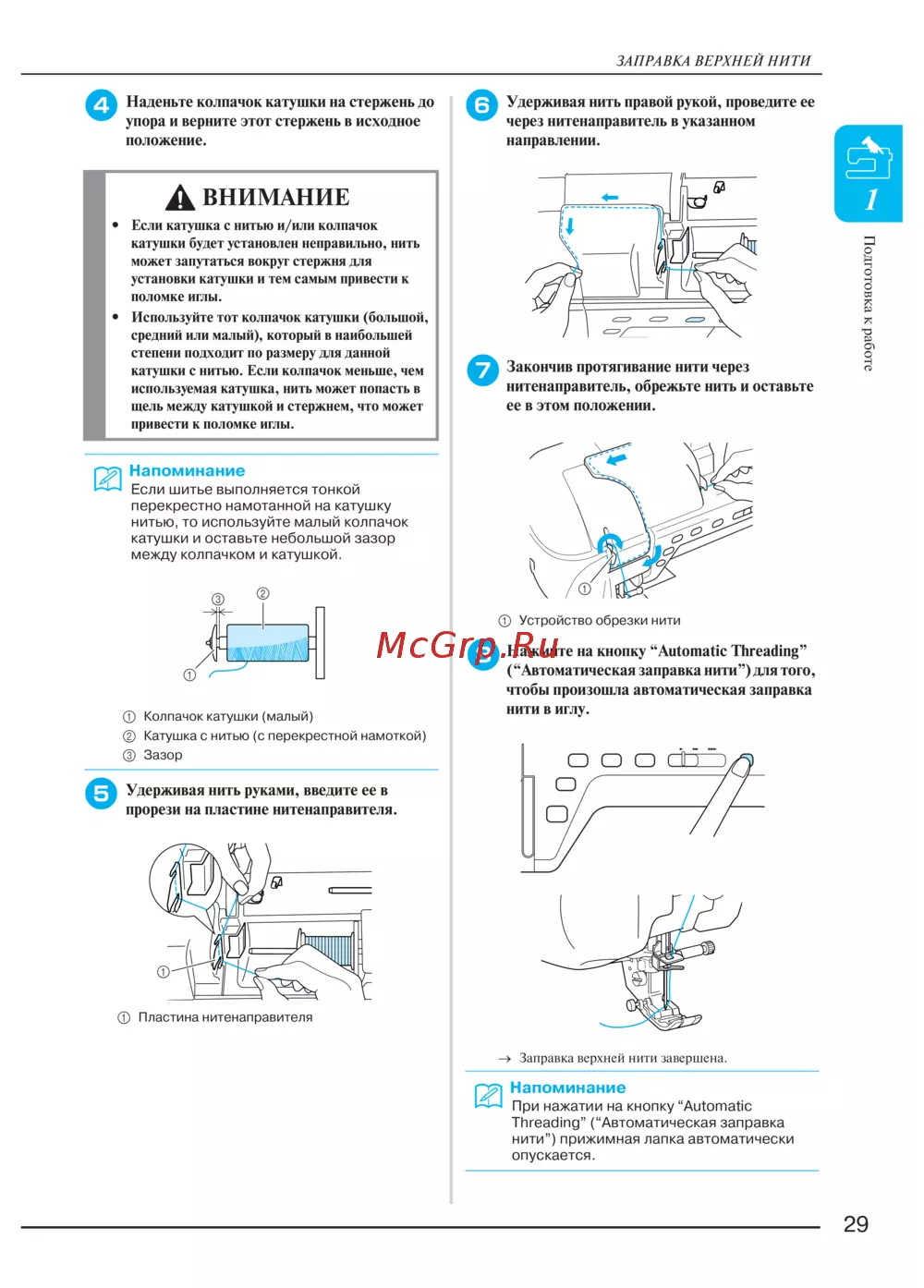 Brother Innov-is 4000 (D) — как правильно заправить верхнюю нить в швейной машине [38/274]