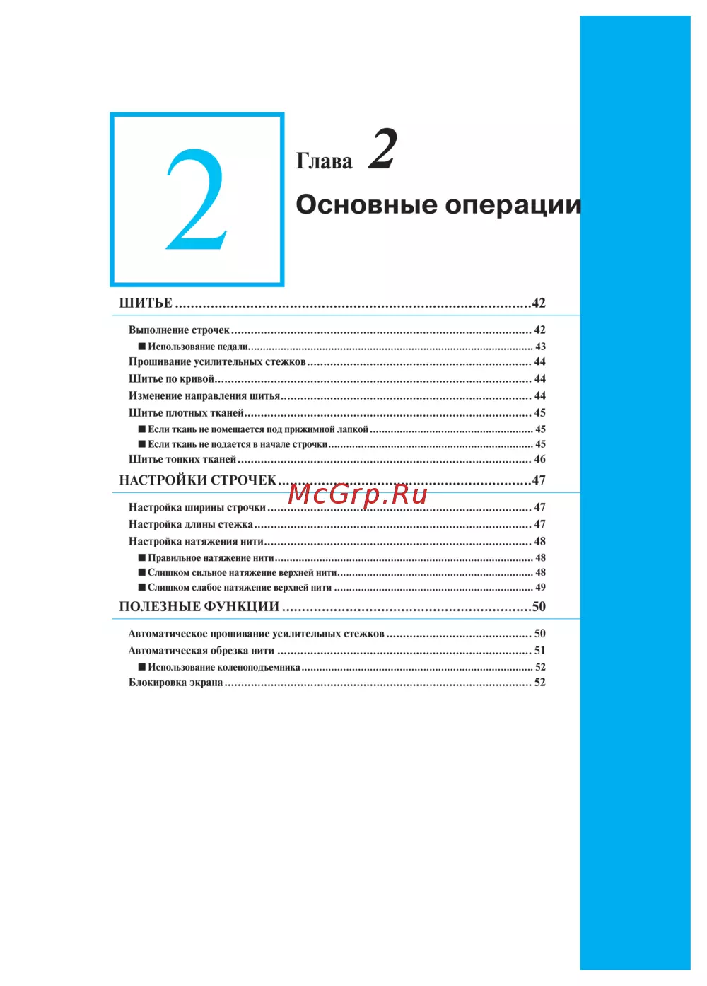 - Просмотр экрана шитья 50 подготовка ткани 52 p.8