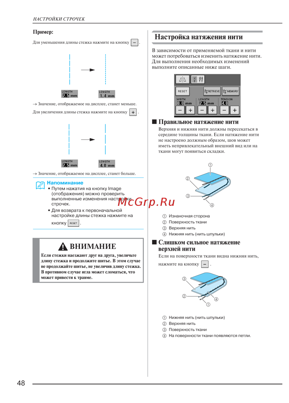 - А затем на кнопку можно во время шитья получить рекомендации по решению незначительных проблем для возврата к первоначальному экрану в любой момент нажмите на p.245