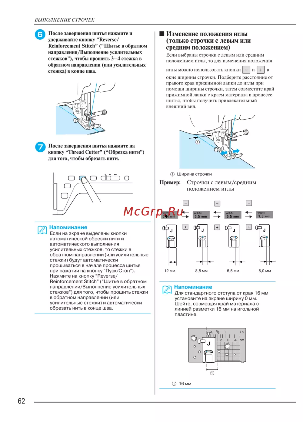 - А затем на кнопку можно во время шитья получить рекомендации по решению незначительных проблем для возврата к первоначальному экрану в любой момент нажмите на p.245