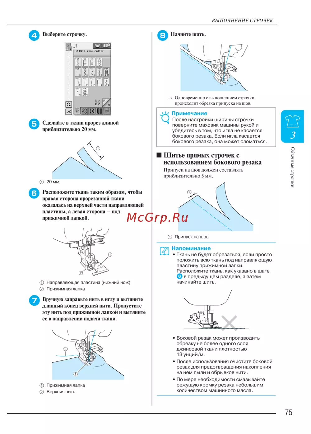 Brother Innov-is 4000 (D) — как выполнить строчки и обрезку ткани при шитье [84/274]