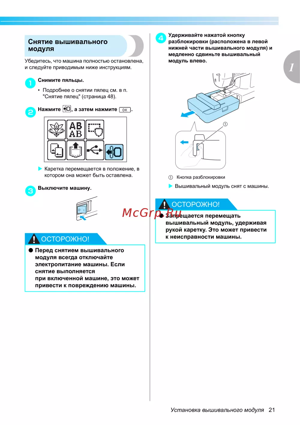 Brother Innov-is 97E [23/96] Установка вышивального модуля 21