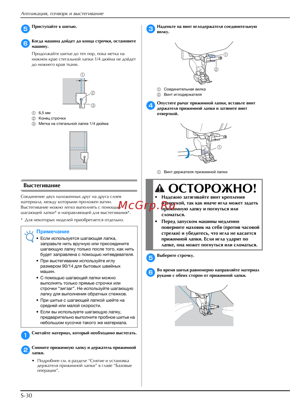 нижнем крае стегальной лапки 1/4 дюйма не дойдет