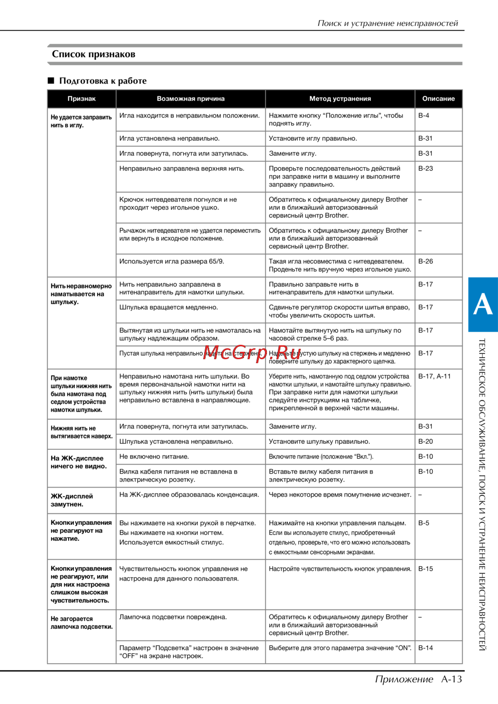 Brother Innov-is F480 [195/208] Техническое обслуживание поиск и устранение неисправностей