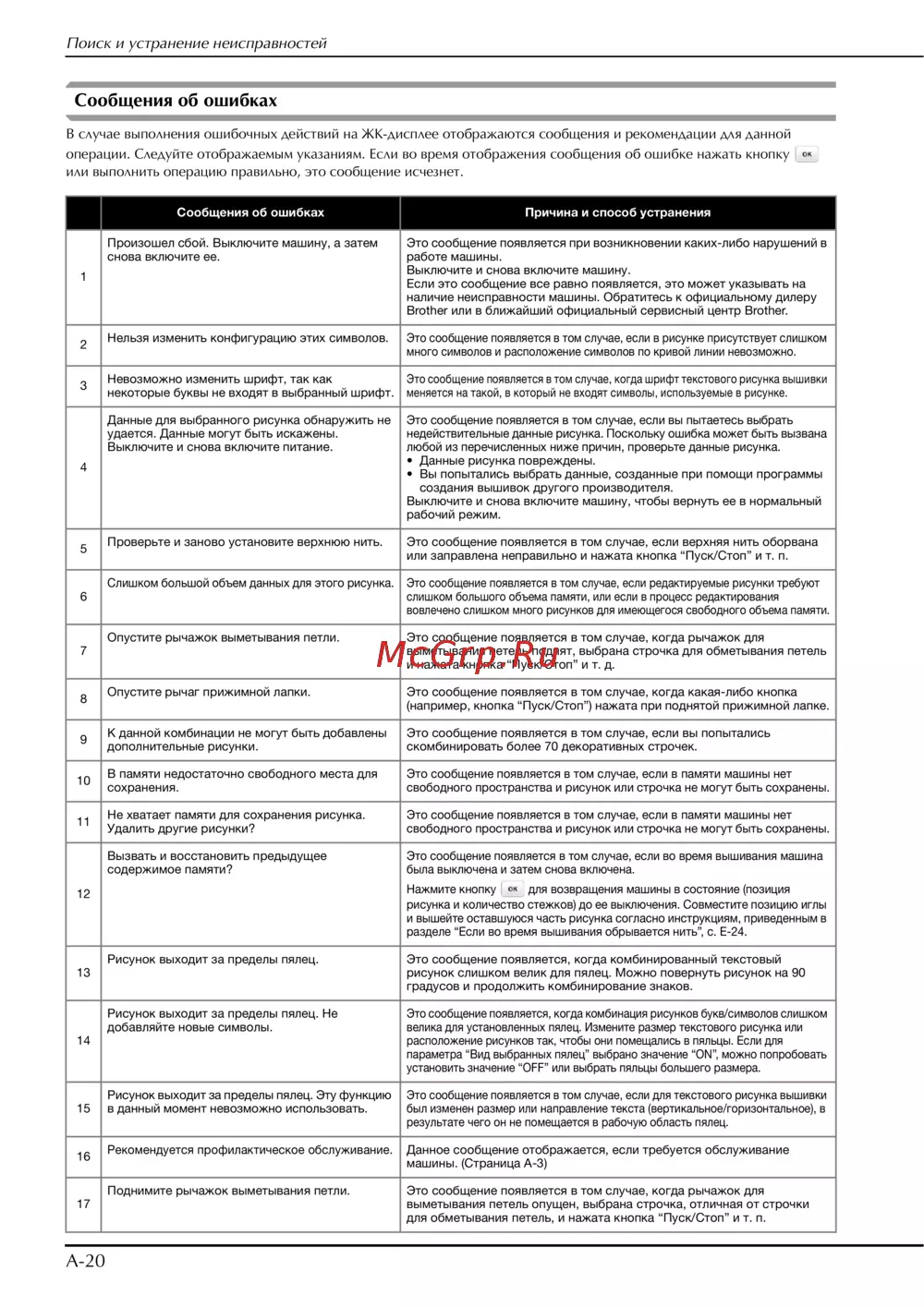 Brother Innov-is F480 [202/208] Поиск и устранение неисправностей