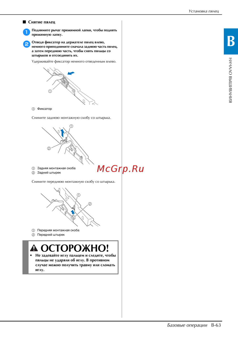 • Не задевайте иглу пальцем и следите, чтобы