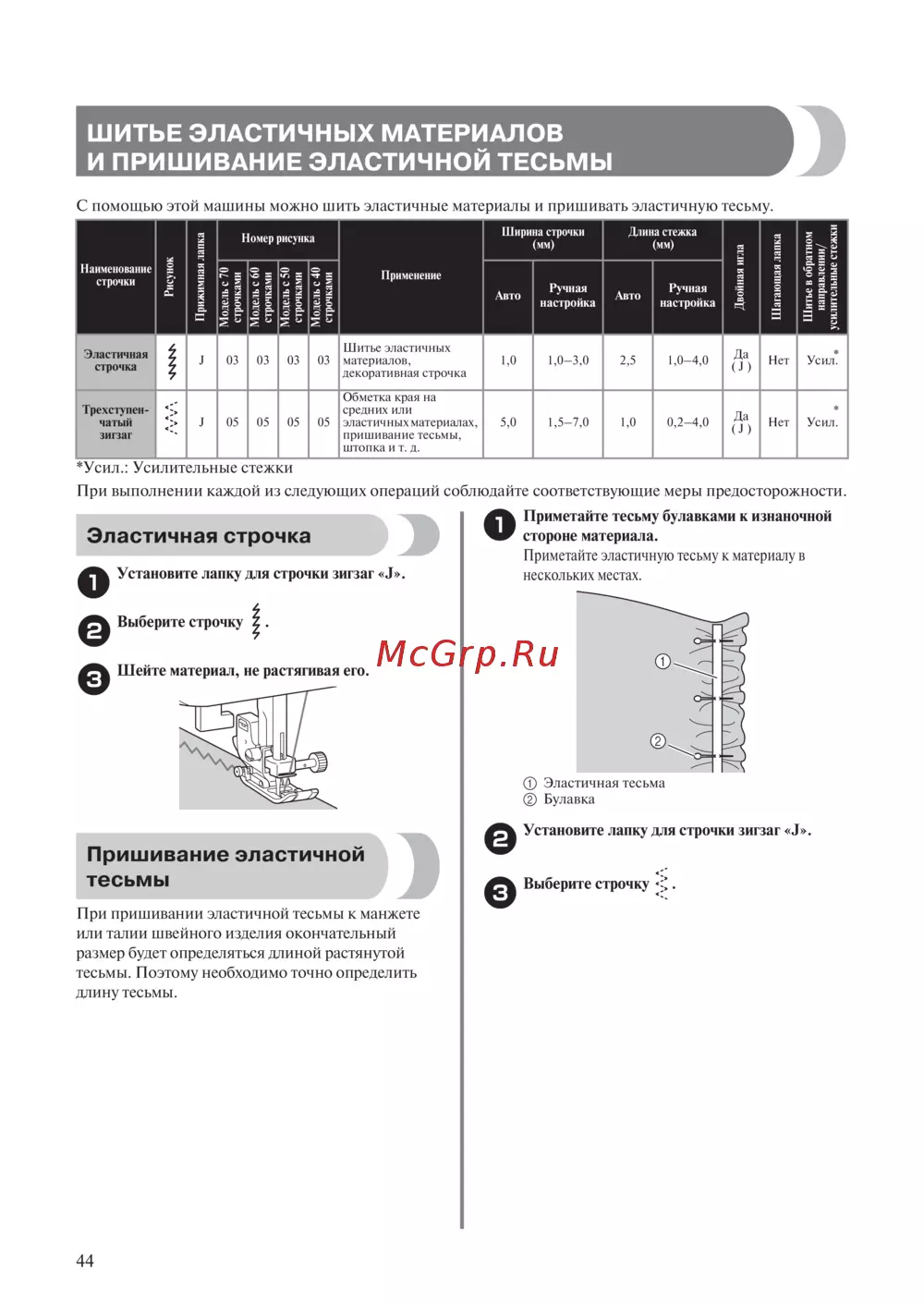 - Шитье эластичных материалов и пришивание эластичной тесьмы p.48