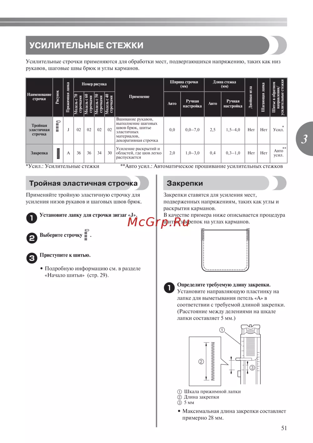 - Усил усилительные стежки не использовать шитье в обратном направлении p.50