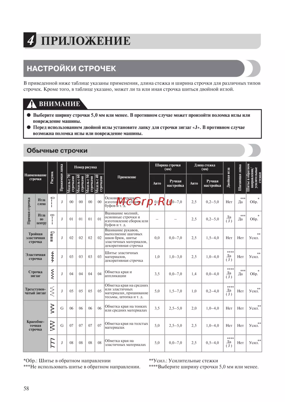 строчек. Кроме того, в таблице указано, может ли та или иная строчка шиться двойной иглой.