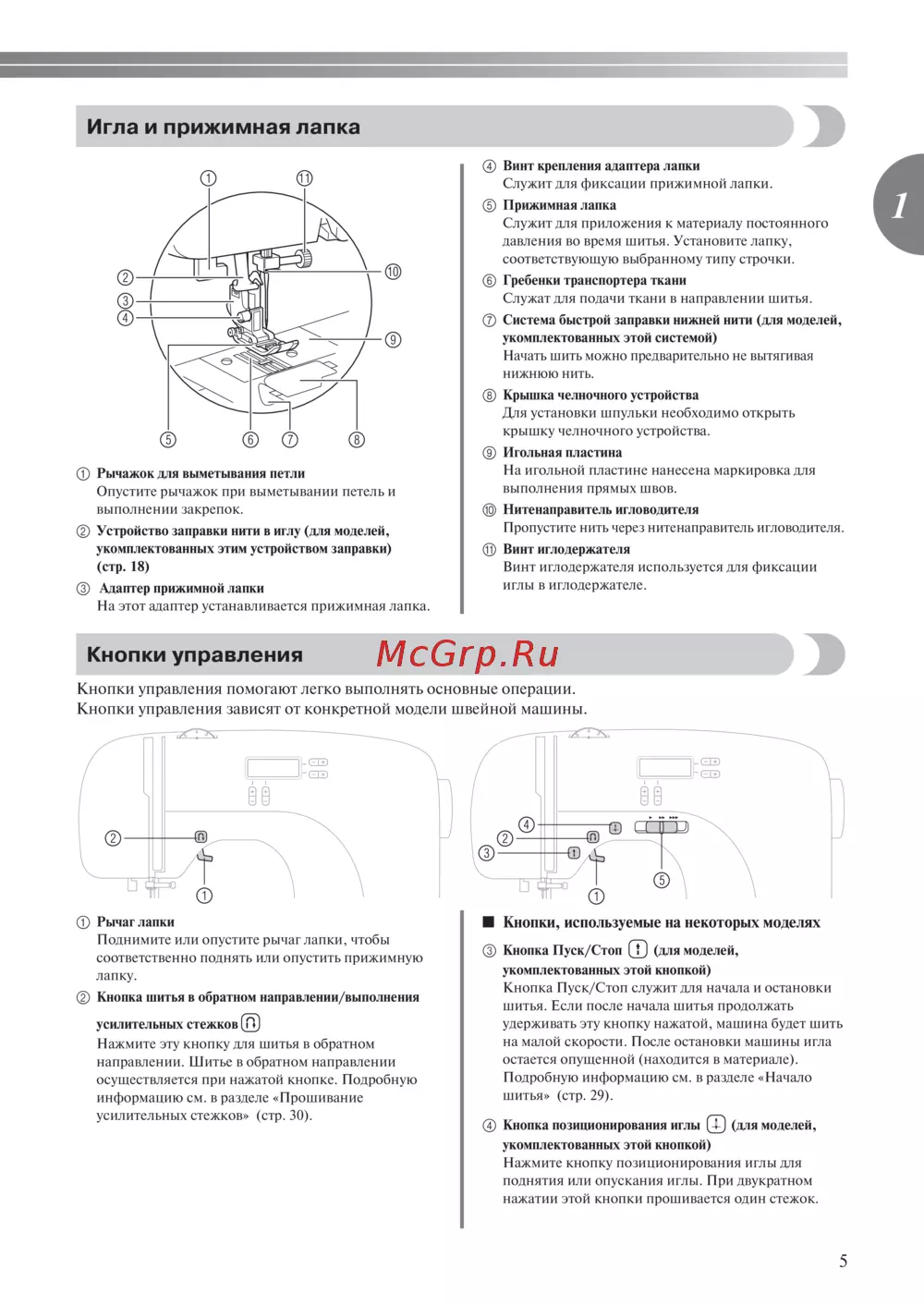 ![Brother JS-100 [9/76] Кнопки управления помогают легко выполнять основные операции кнопки управления зависят от конкретной модели швейной машины](/views2/1964194/page9/bg9.png)