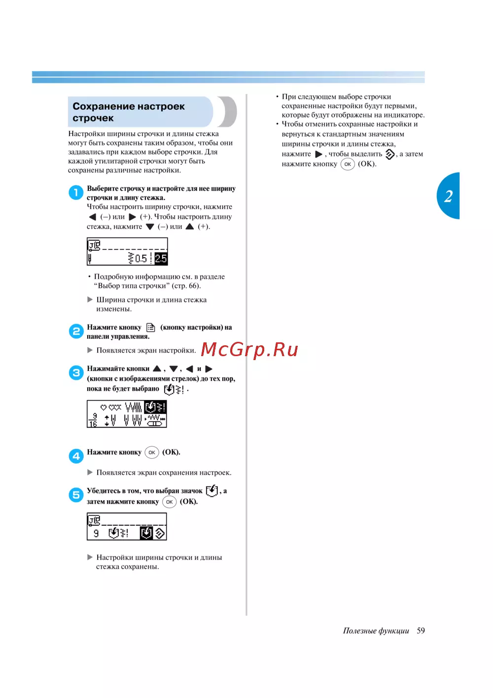 - Установите ширину строчки не более 6 0 мм в противном случае игла может погнуться или сломаться p.119