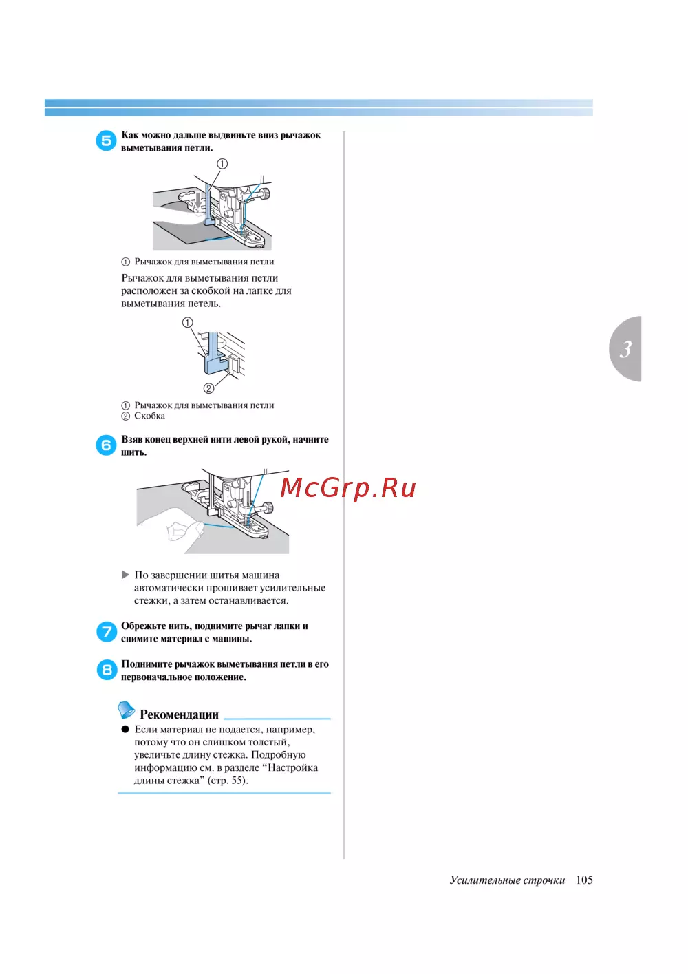 - Установите ширину строчки не более 6 0 мм в противном случае игла может погнуться или сломаться p.119