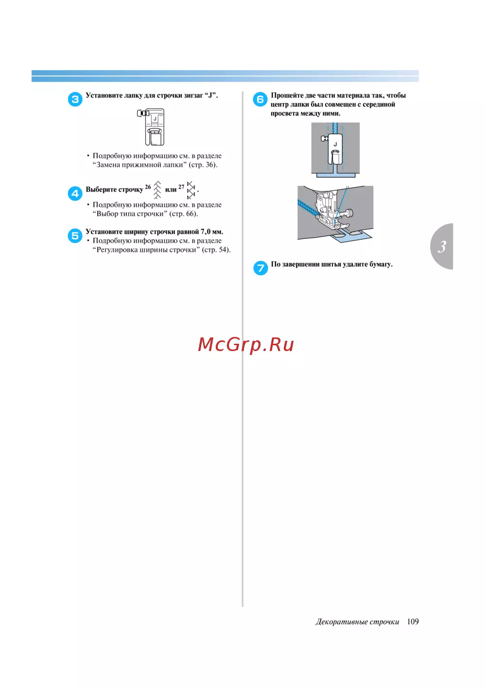 - Установите ширину строчки не более 6 0 мм в противном случае игла может погнуться или сломаться p.119
